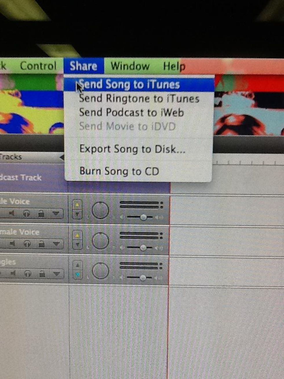 After stopping the recording, push share, send song to iTunes to convert it to a mp3 file.