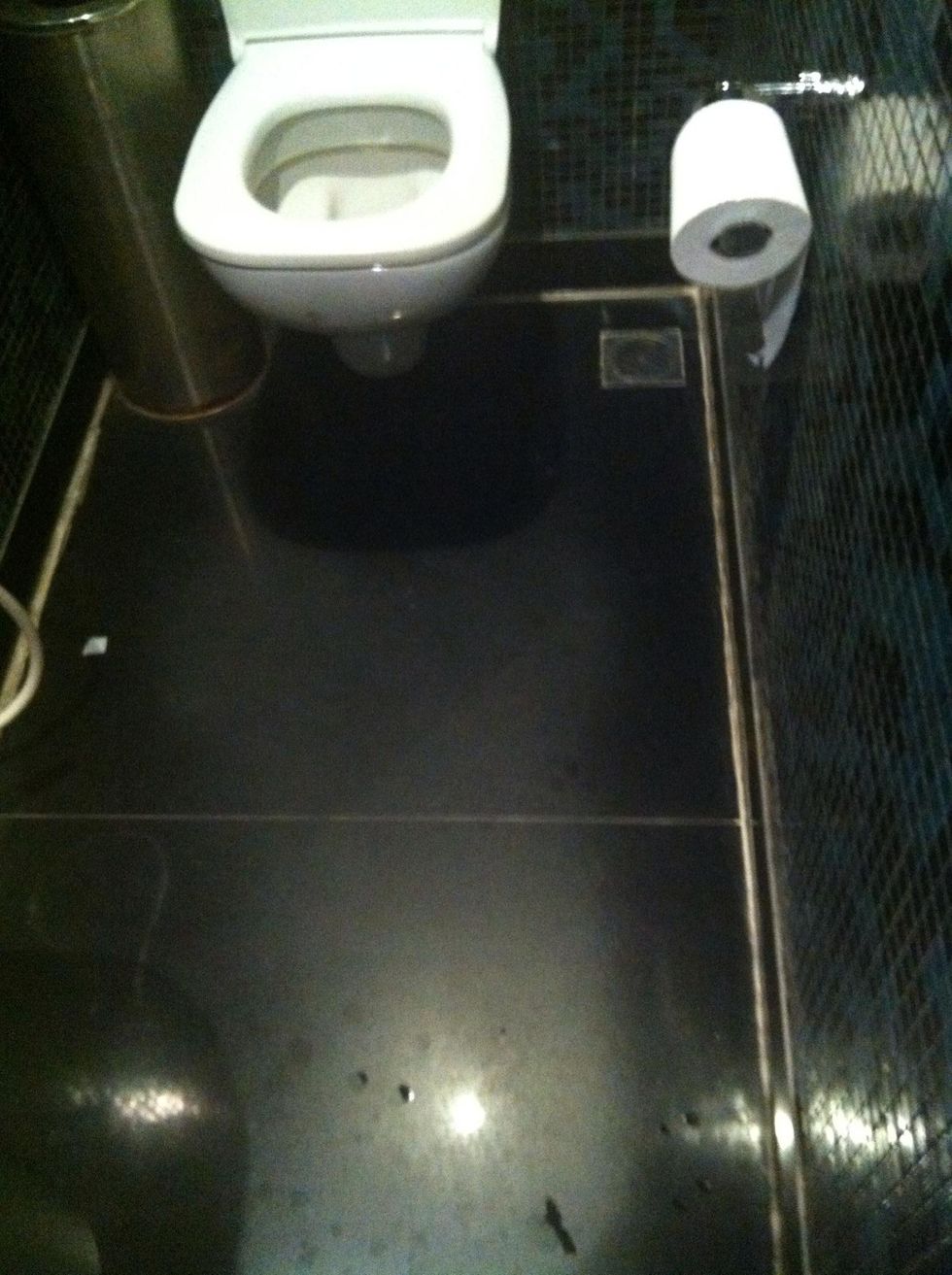 Be considerate to others and leave the restroom clean when you exit. Take as less time as possible. Don't wet the floor. If you notice it is dirty, tell someone to clean it.