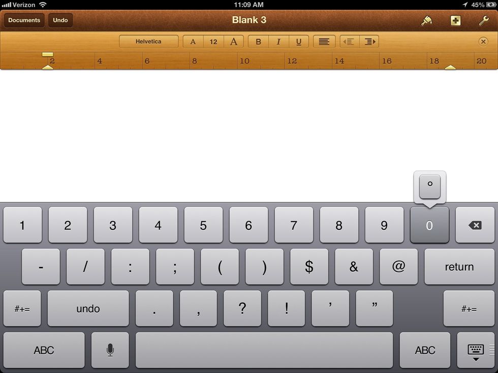 Now let's take a look at the digit screen. For the first one if you hold down the digit 0 you get the degree symbol.