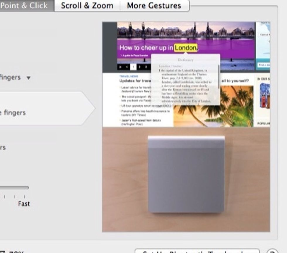 The following tutorial demonstrates how to use gestures on your track pad. You can also find the tutorials on your Mac under system preferences