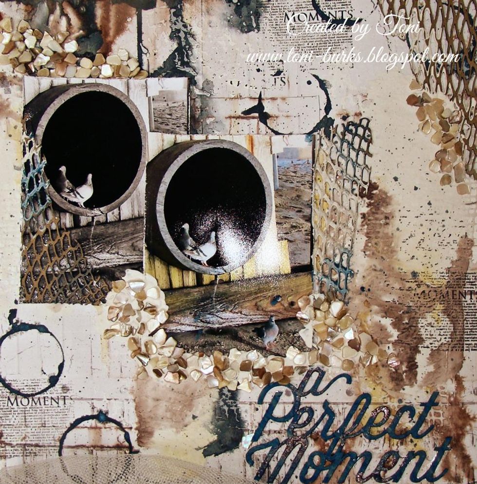 Using my finger I rubbed Metal Effects - Copper here and there over my title for a aged rusty look.