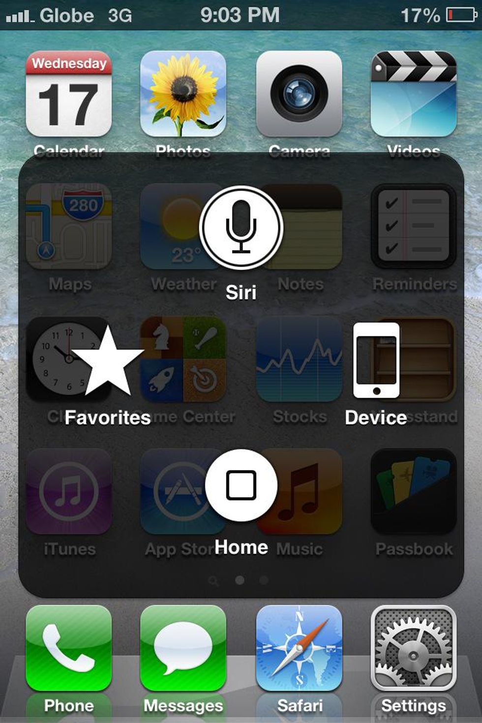 You could also access SIRI on your Assistive Touch. Just double tap the small circle and a window will be launch.