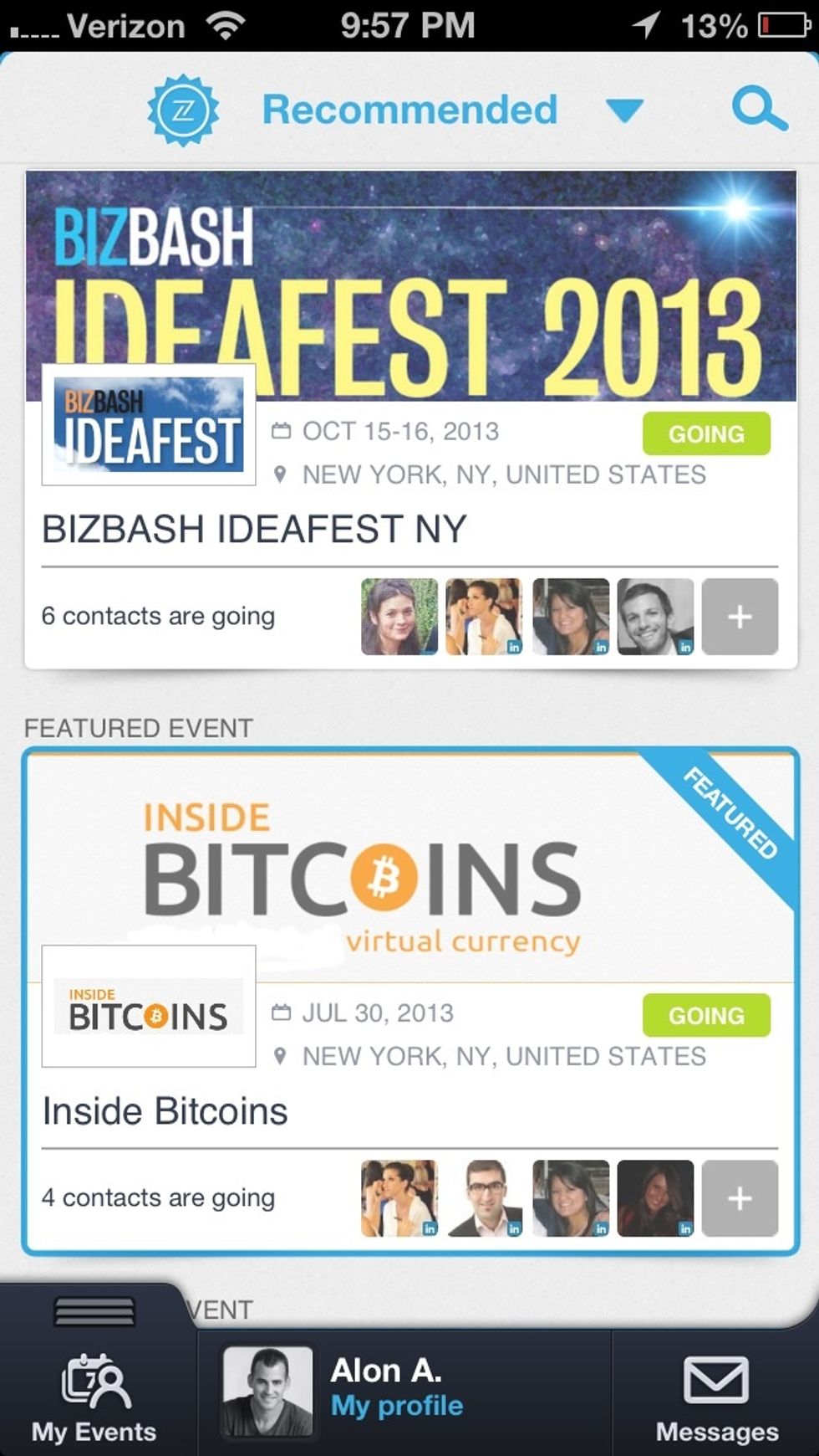 Search for an event name or click on Recommended to checkout upcoming conferences in your area
