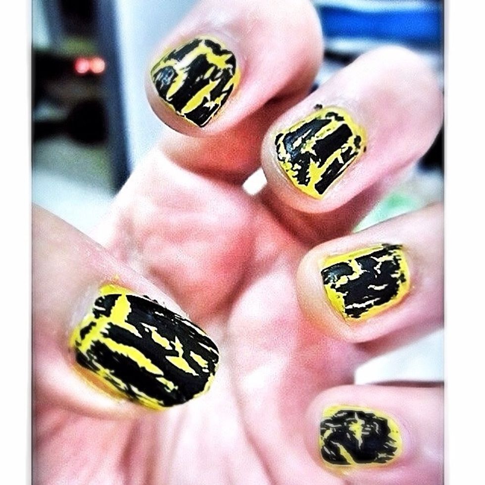 Choose the bright nail polish as a base. For now, i will choose the yellow one. 💅wait until dry and add the black shatter on top of yellow.