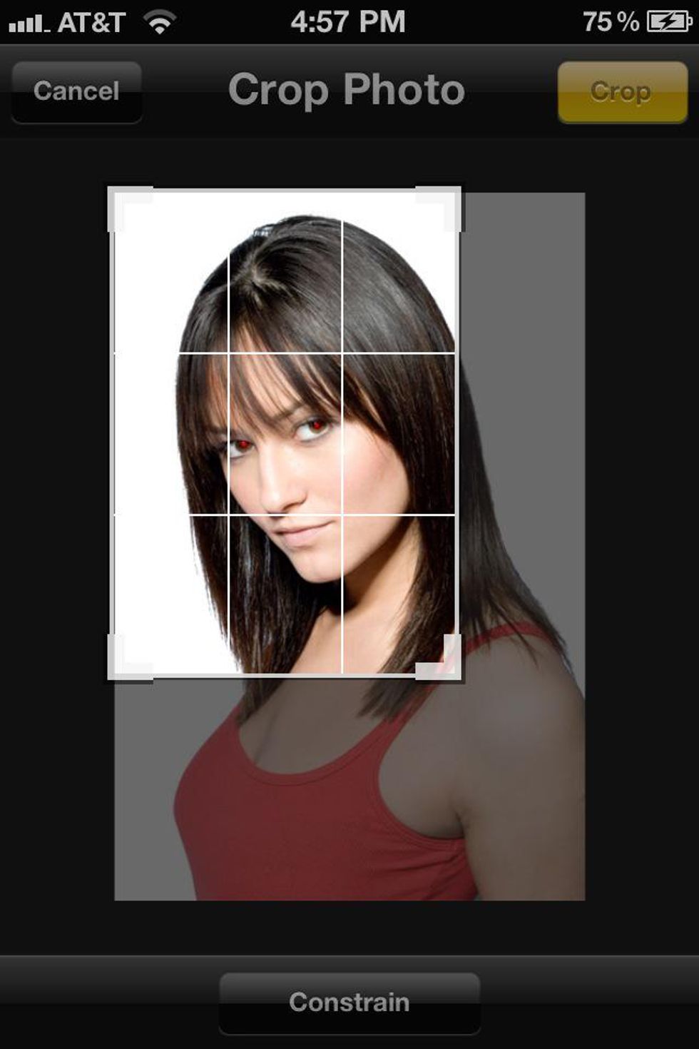 Drag the corners to center the grid over the area you want to keep. Anything outside the grid will be deleted. When done tap "Crop" at top right corner.