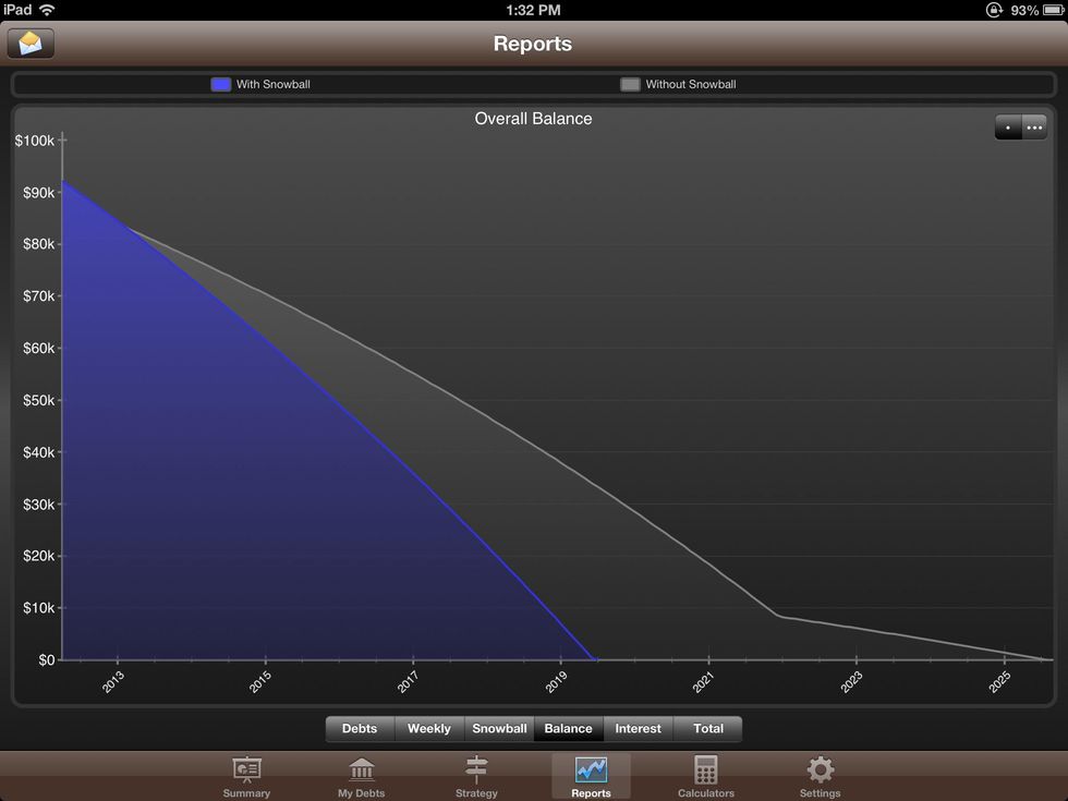 After the debt is entered, a chart will display the information. Payoff date for debt is shown.
