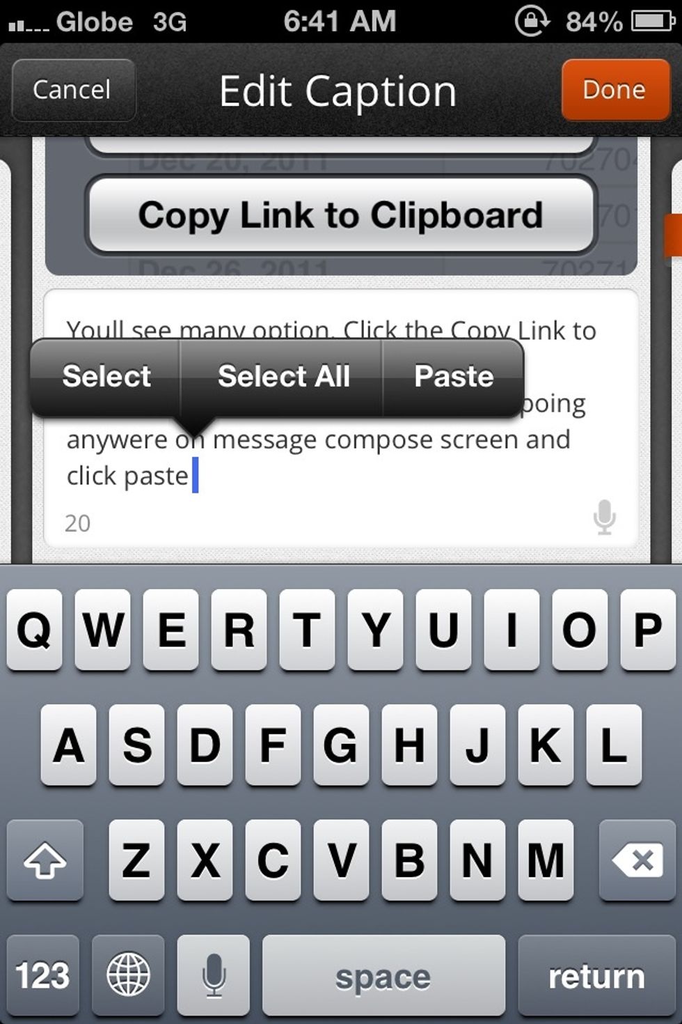 Youll see many option. Click the Copy Link to Clipboard. Other Menu are basic. after copying the link. you can paste it by tapoing anywere on message compose screen and click paste.SEE NEXT SCREENSHOT