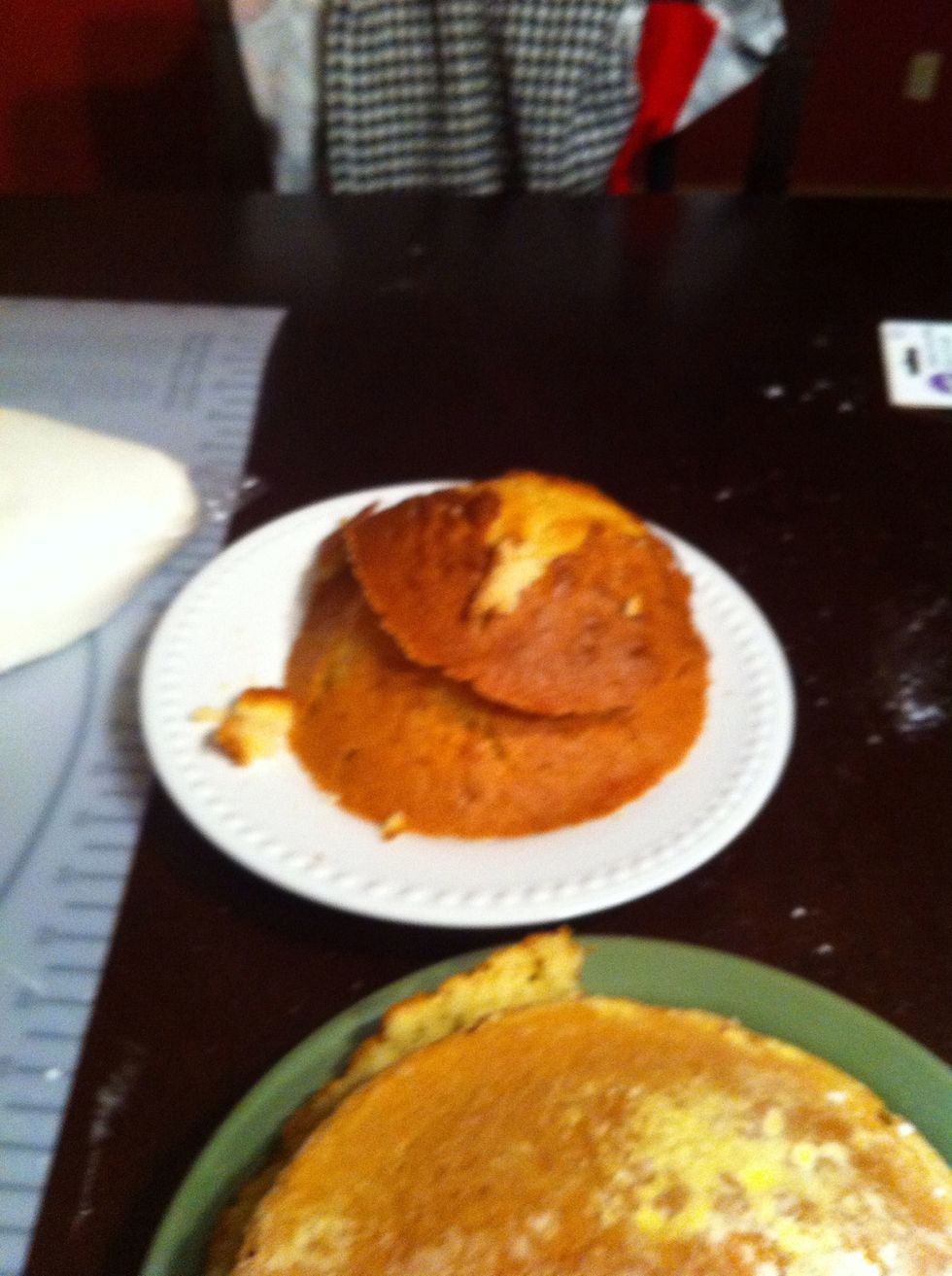 Cut the top of the cake to make sure it's leveled. I did not have a Serrated knife, like most people suggest, so I used the longest knife in my kitchen.