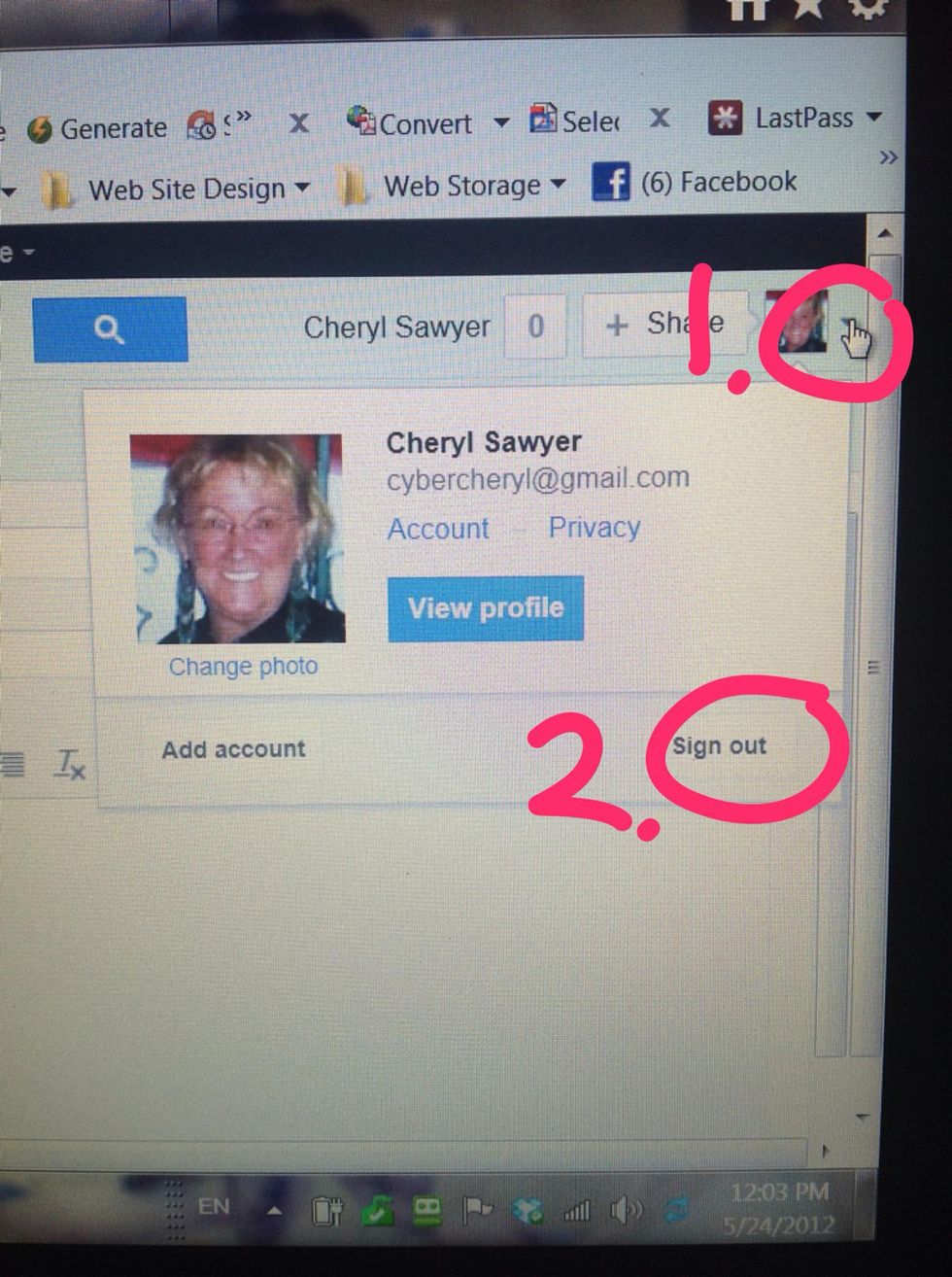 1. Click on the small triangle to bring up the logout screen. 2. Click on Sign out, especially if you are on a public computer.