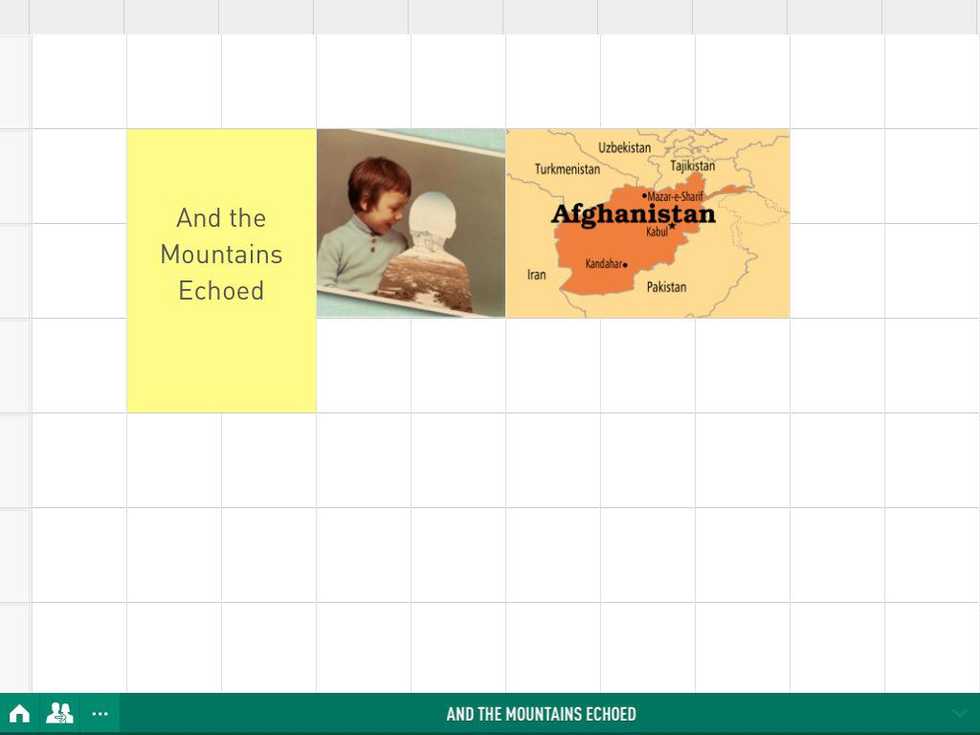 This is what my grid over the book And the Mountains Echoed looks like. (I started just with the top row but I may finish it soon!) See the specifics for the project here: http://tinyurl.com/nypdqy3