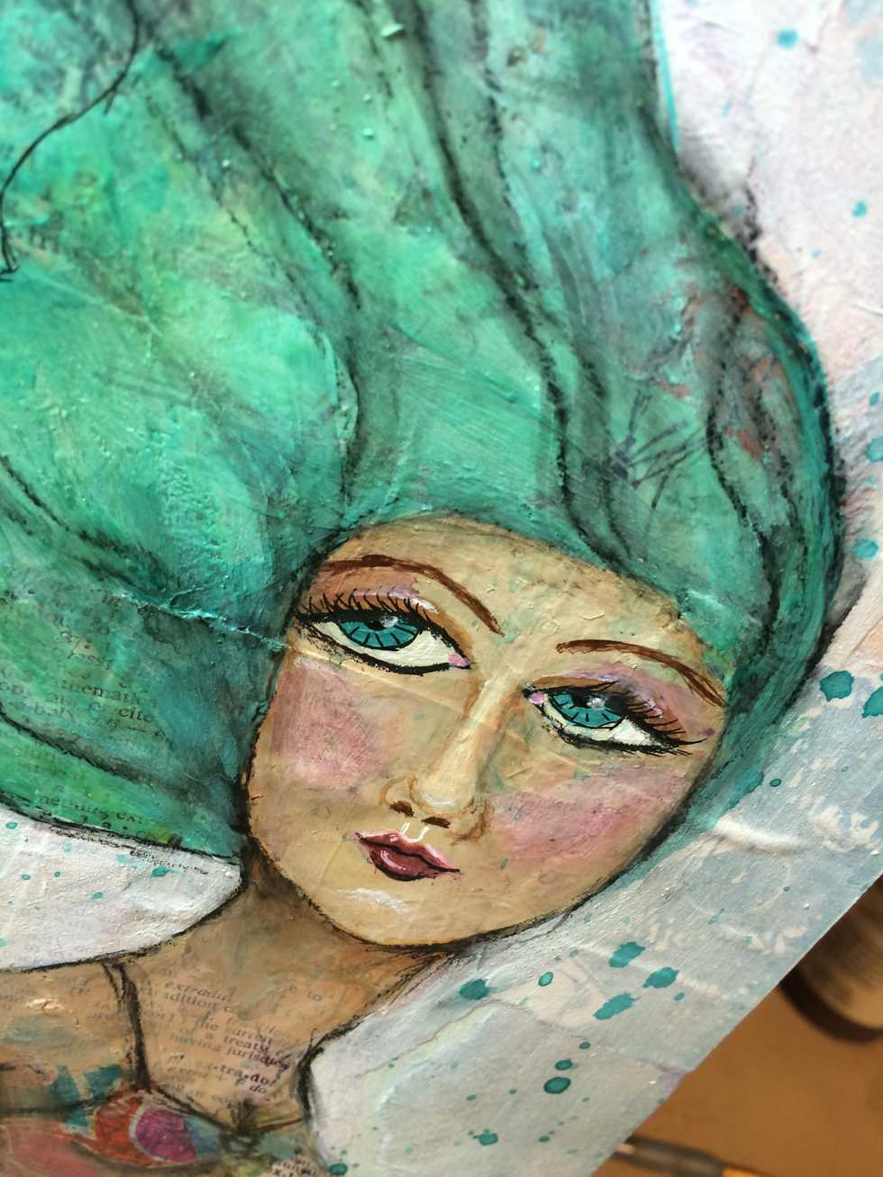 Here's a close-up of the completed face. I used a White Signo Pen to draw in highlights.