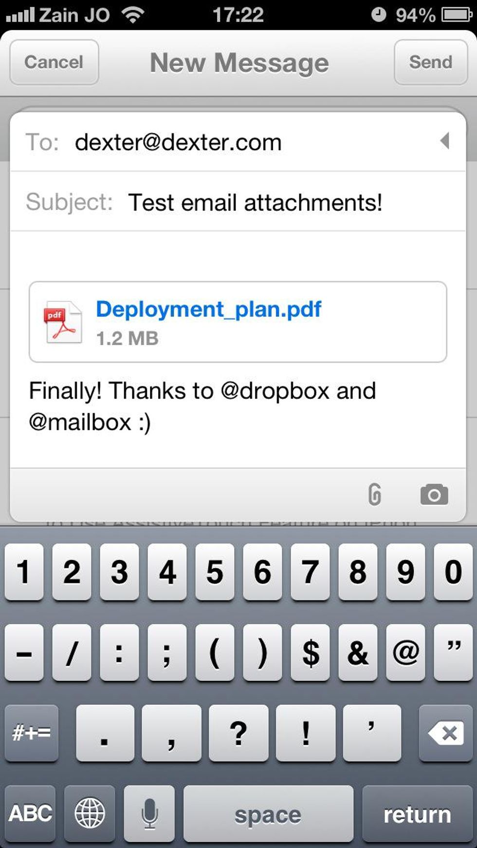 From the App Store download Mailbox and Dropbox apps for iPhone (as shown in steps 1 and 2)
