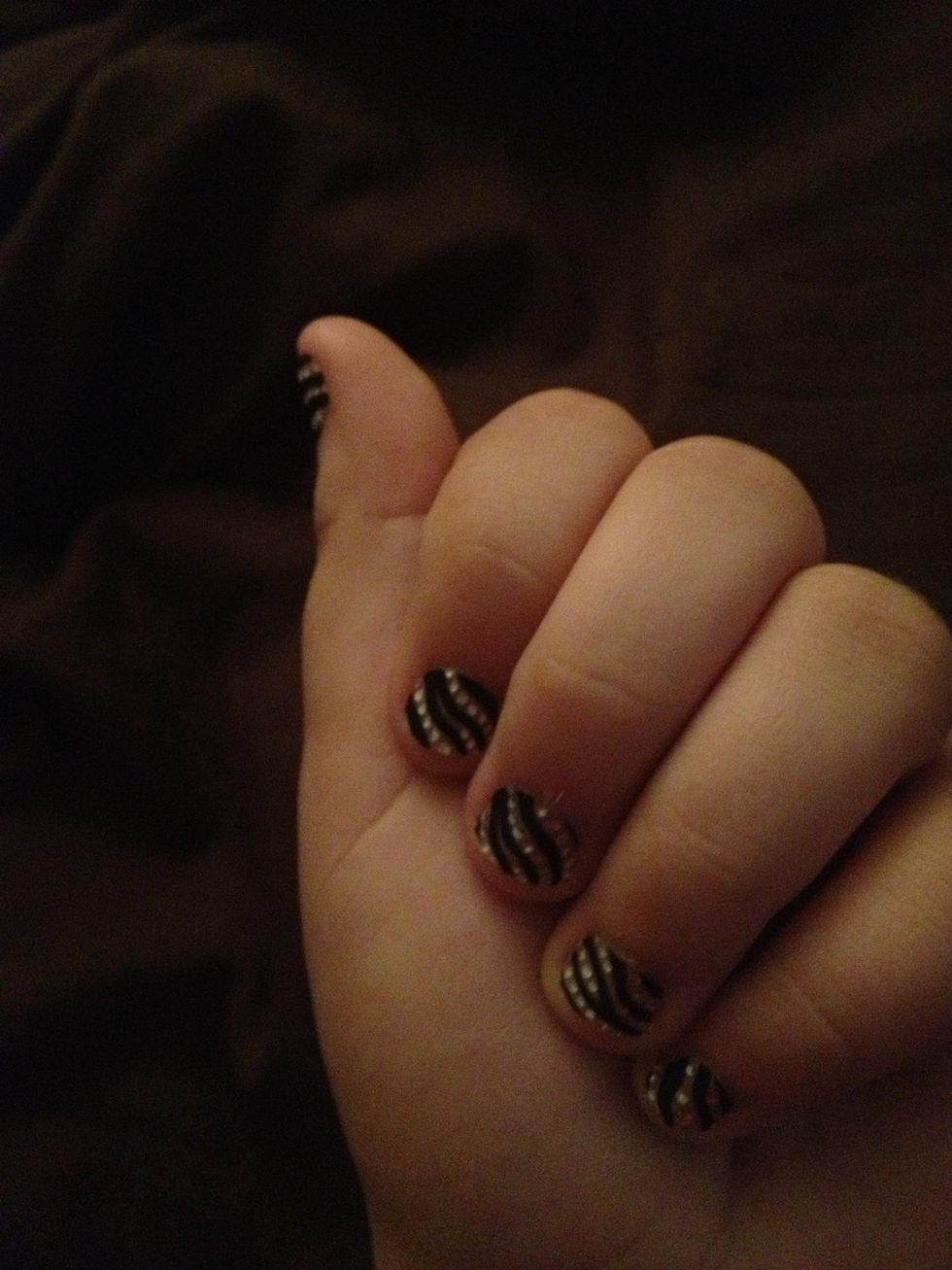 I am using a transparent jeweled zebra set, on my short bitten nails.