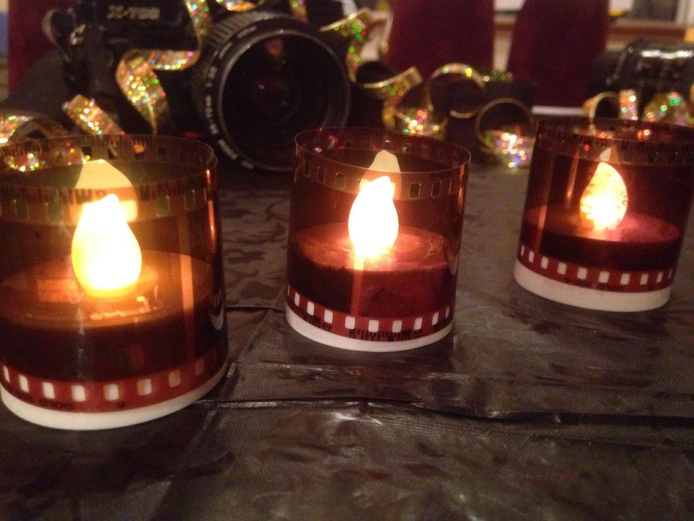 Wrap negative around *tea light and use adhesive to attach. (I used double stick tape) *Do NOT use real candles in this project, as negatives are highly flammable.Top view.