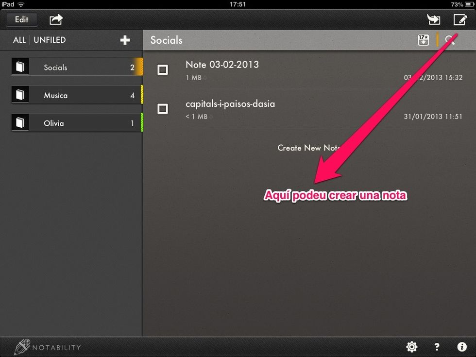 Un cop heu clicat per crear una nota, us sortirà aquesta pàgina