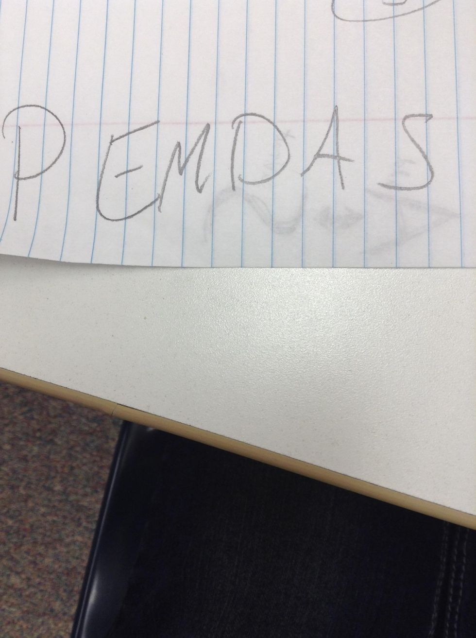 This is what PEMDAS stands for, Parenthesis, exponents, multiply, divide, add, and subtract.