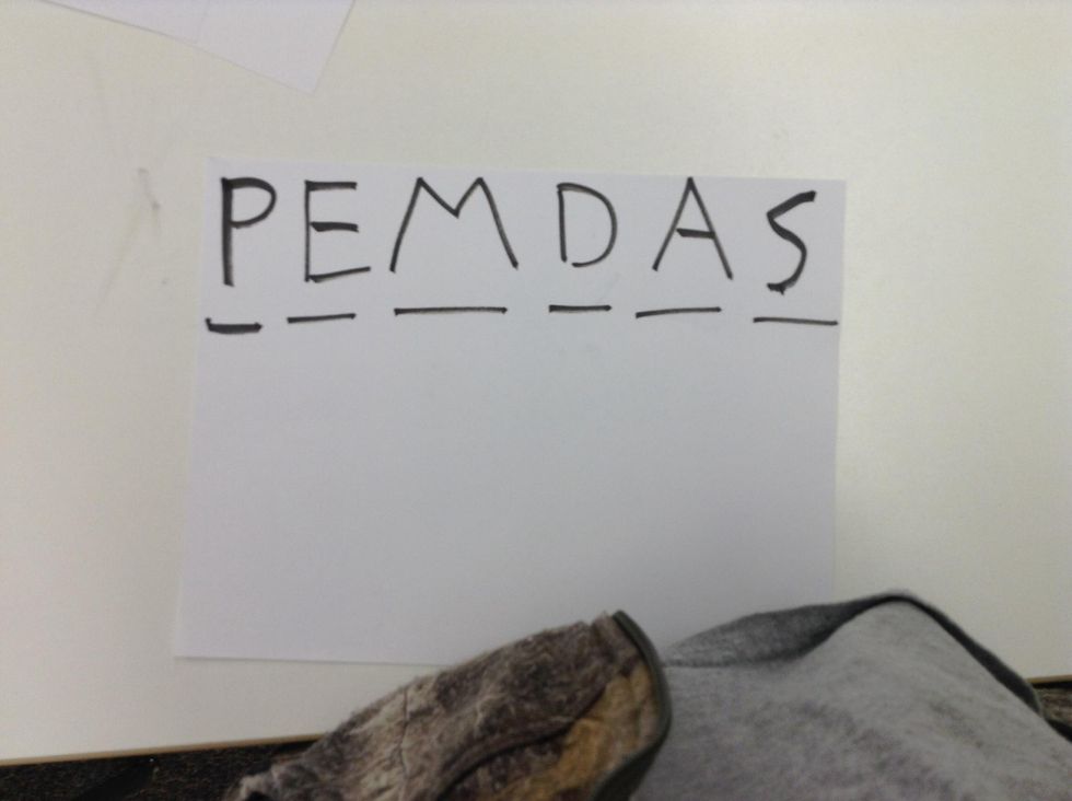 The P stands for Parenthesis.The E stands for exponents.The M stands for multiply.The D stands for division.The A stands for add.The S stands for subtract.Pick a problemDo the parenthesesDo the other parentheses8-4Now do multiplicationThen do addition