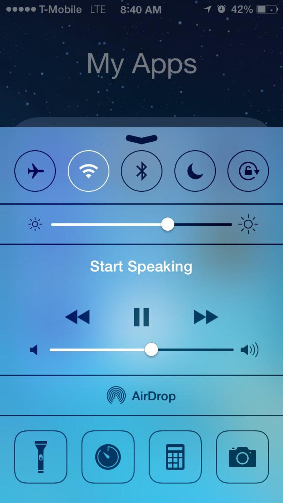 While out of the app, you can still control Start Speaking from the control center in iOS 7