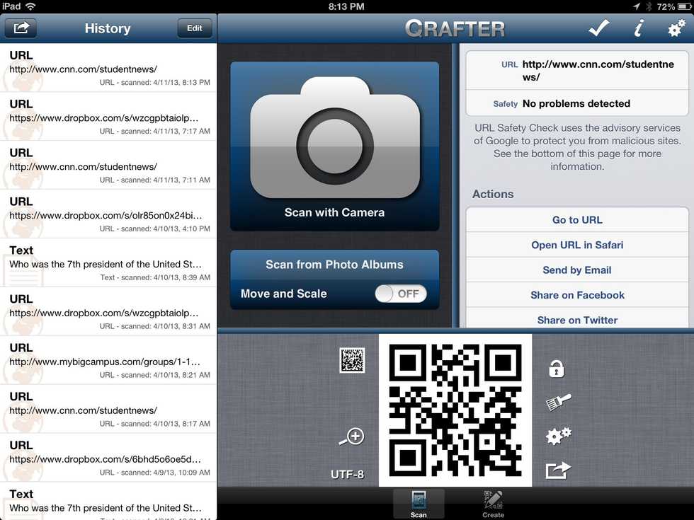 On the main screen, you will see a History of all the codes you have scanned.