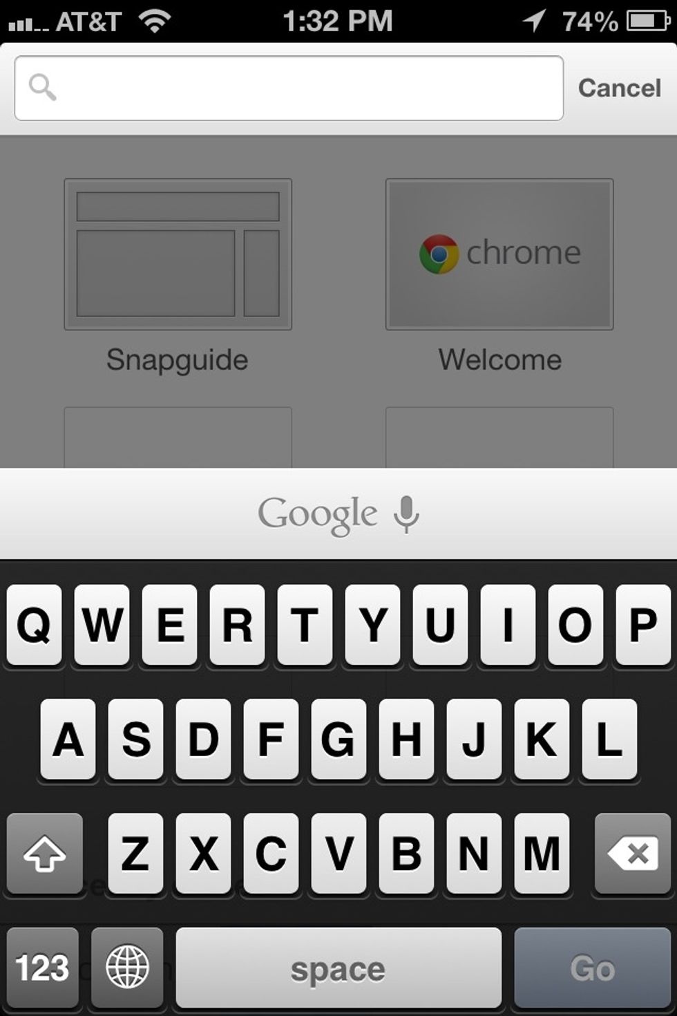 Open the chrome browser on your iPhone, iPod or iPad. Tap the box where you'd type in a URL or search words.