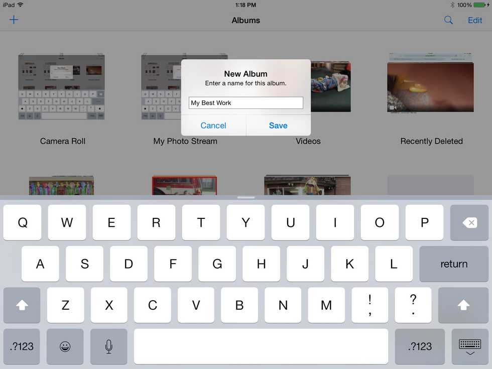 Open Photos on your iPad. Remember the icon looks like a colorful flower! Click Albums on the bottom right.