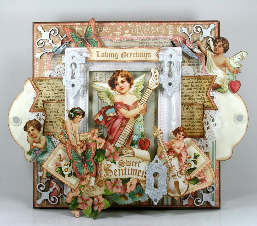 Add fussy cut cherub from Graphic 45 Sweet Sentiments~ Sweet Sentiments to top right edge,