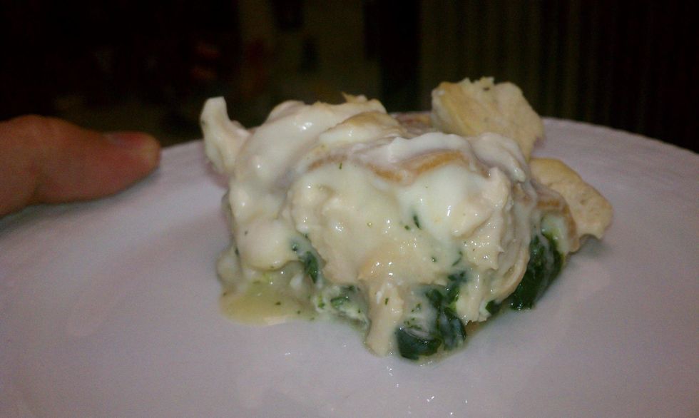 Layer chicken with Alfredo sauce