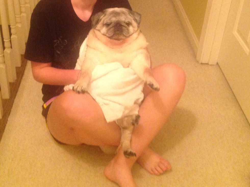Collect your supplies: dog shampoo, a cup, and plenty of towels