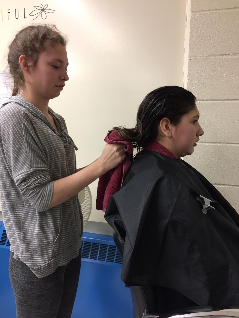 Step 12. Take client back to your chair and proceed to dab the hair making sure to get the excess water out.
