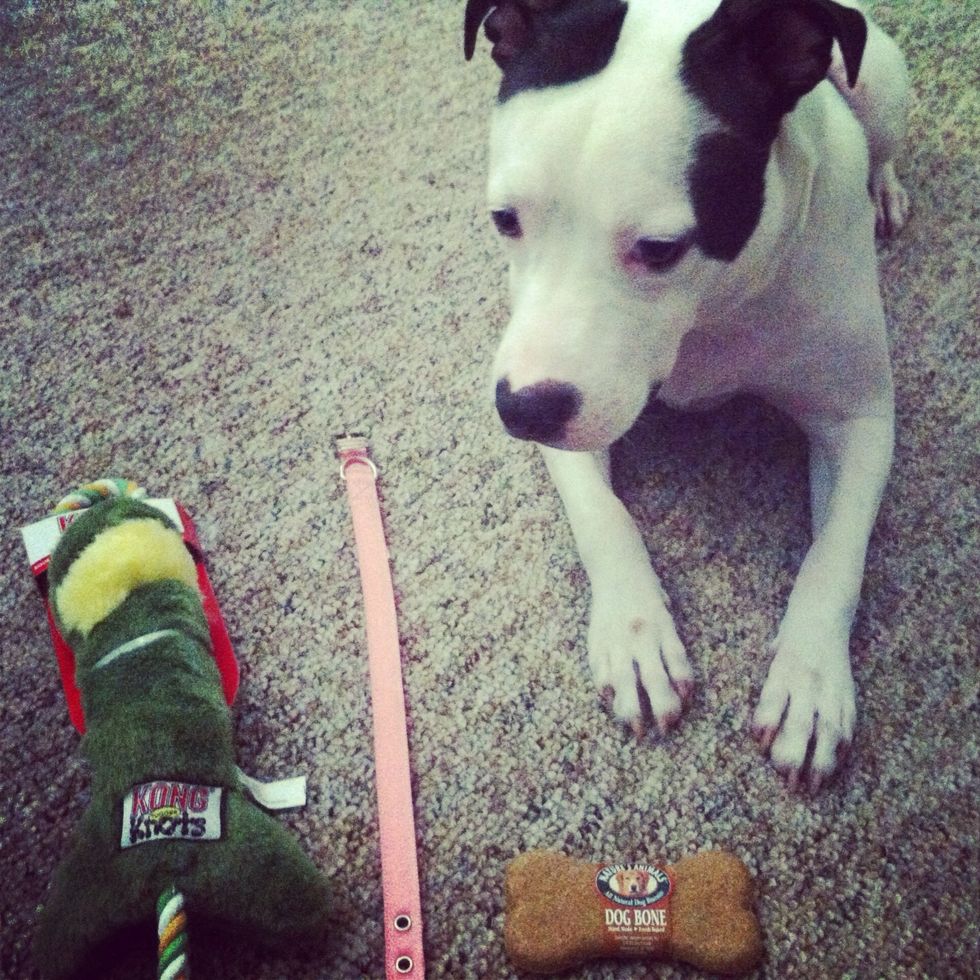 Now she is all clean, and happy! I also got her a couple early birthday presents for her hehe π