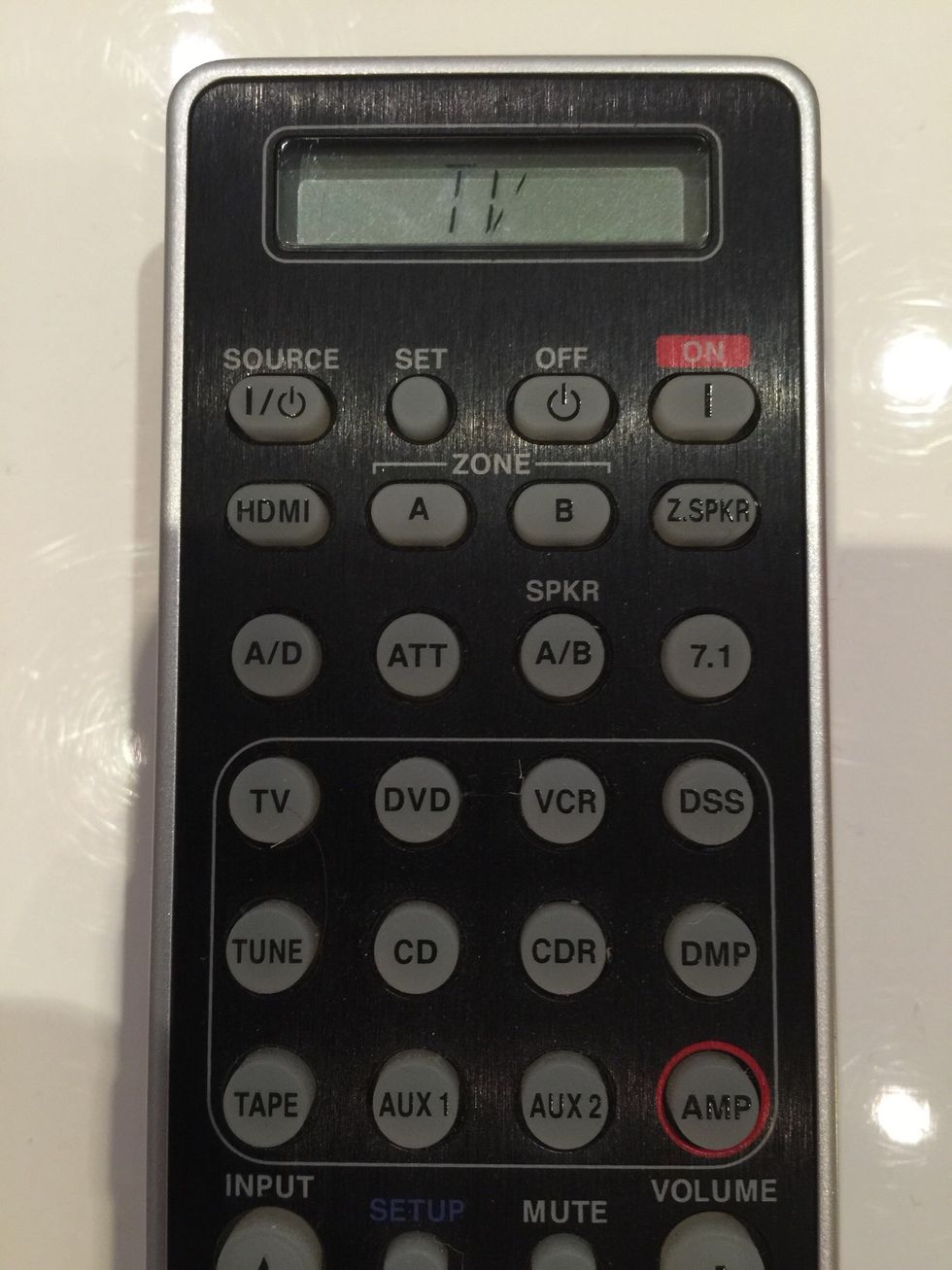 To turn off, do the reverse. Press TV and then the Source / Power Button (top left). Press DSS and then Source / Power button. Then AMP and Source / Power Button.