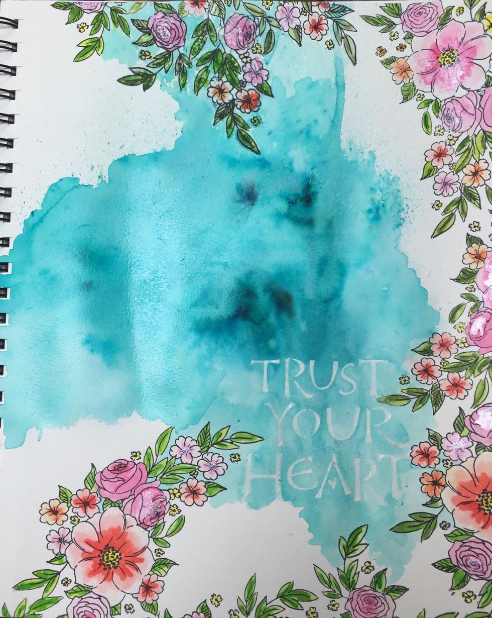 Stamp your journal page to your hearts content. Make sure you use archival ink as you will be watercoloring!