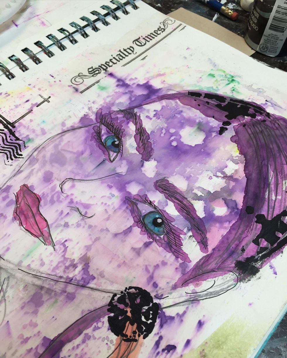 I diluted more orchid to go over her hair, eyebrows and eyelashes They will get more definition when I add the pen strokes