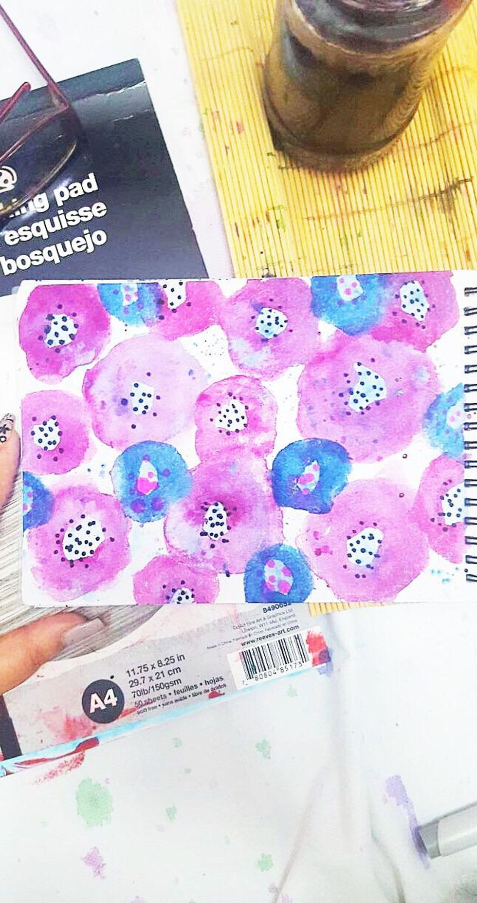 Add more flowers using the same technique and then add some splashes of watercolor paint 🎨.