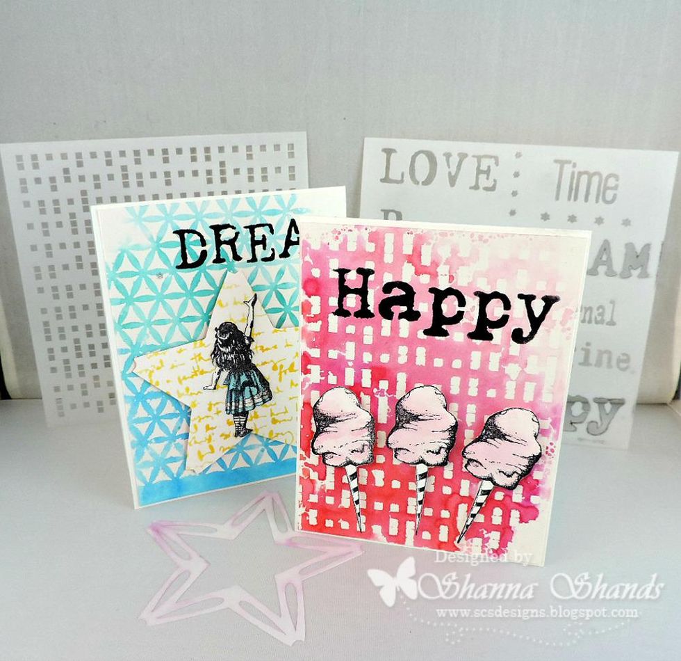Pounce the ink pads on the stencil in an ombre fashion. Then spritz the stencil with water (mini mister is perfect for this). You don't want heavy water.