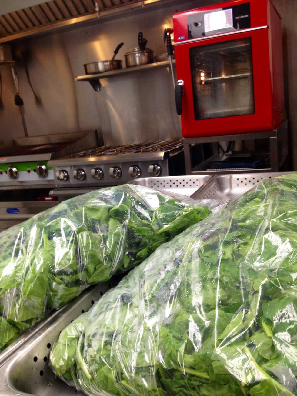 How to wilt spinach in an alto-shaam combi oven Wilting at low temps keeps spinach bright green without absorbing water that later needs to be squeezed outAlto- Shaam 183