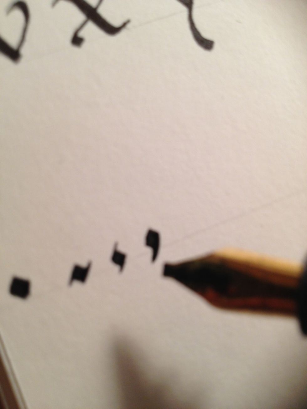 A basic period, or dot, is formed by making a square. Thick nibs can usually accomplish this with a single stroke; thinner nibs might take two.