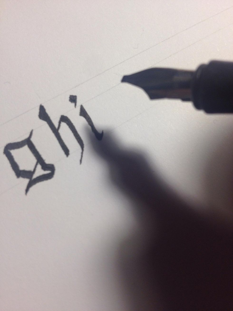 From there, make a thick stroke diagonally until you hit the bottom line.