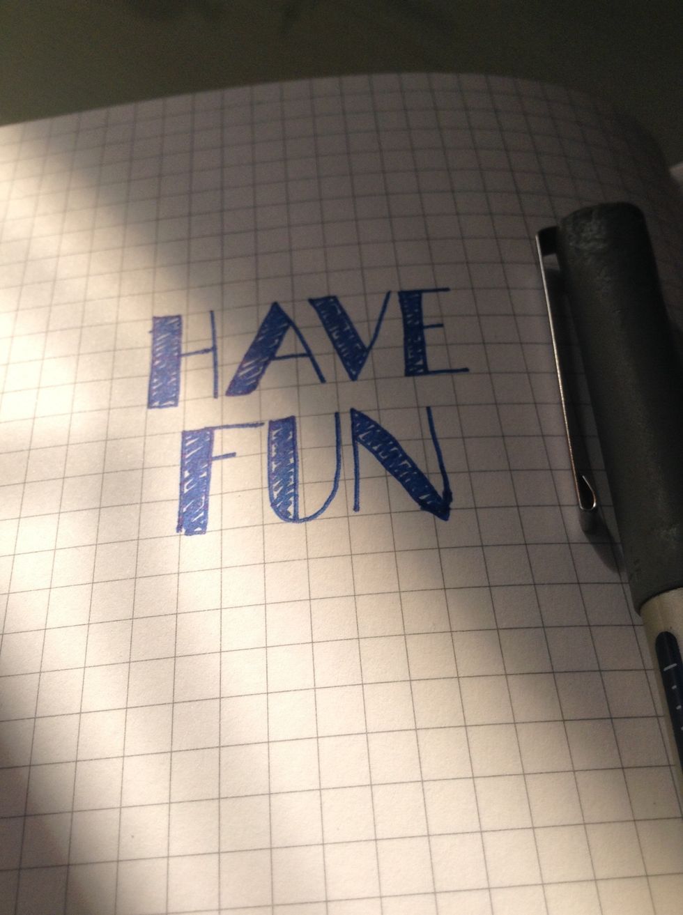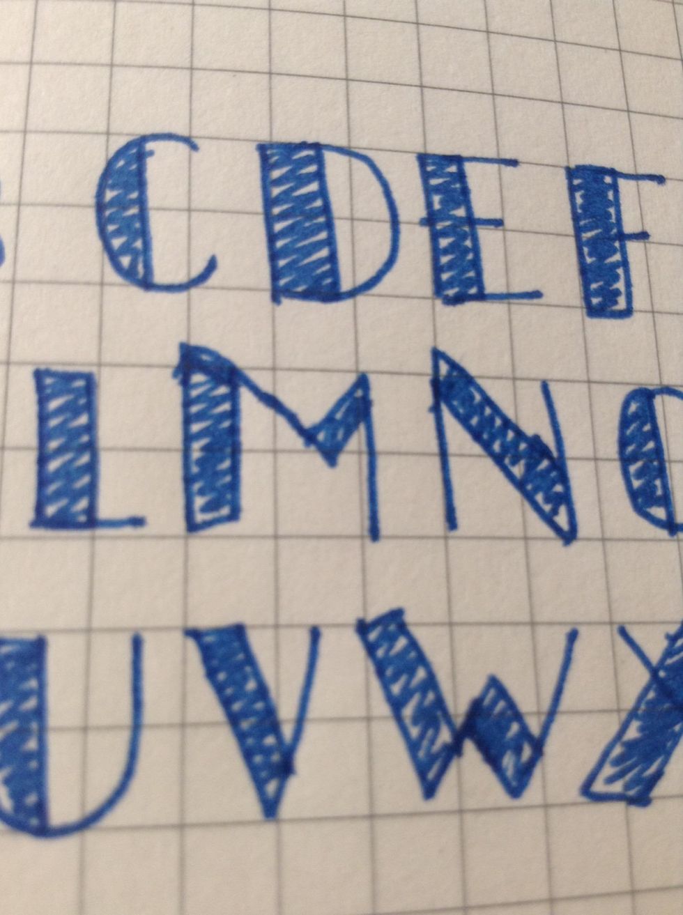 Hey people! Today I'm gonna show you how to write in the 'Broadway' font. It's pretty easy; a letter is divided into 2 parts, thick a thin!