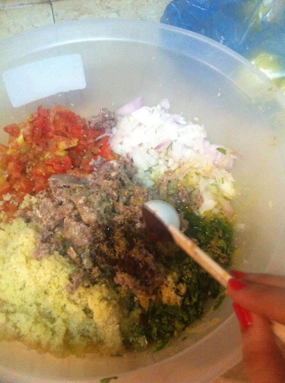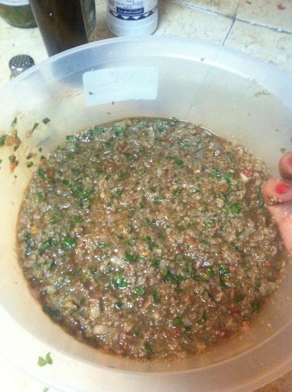 نضيف المكونات كلها فوق بعض ولا ننسى الملح