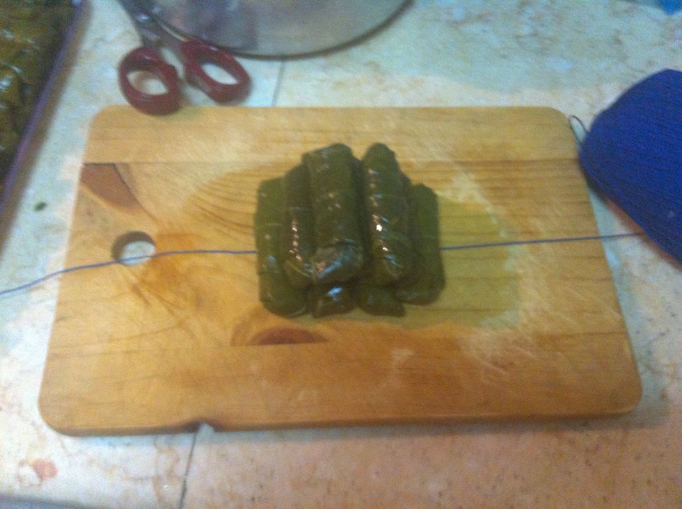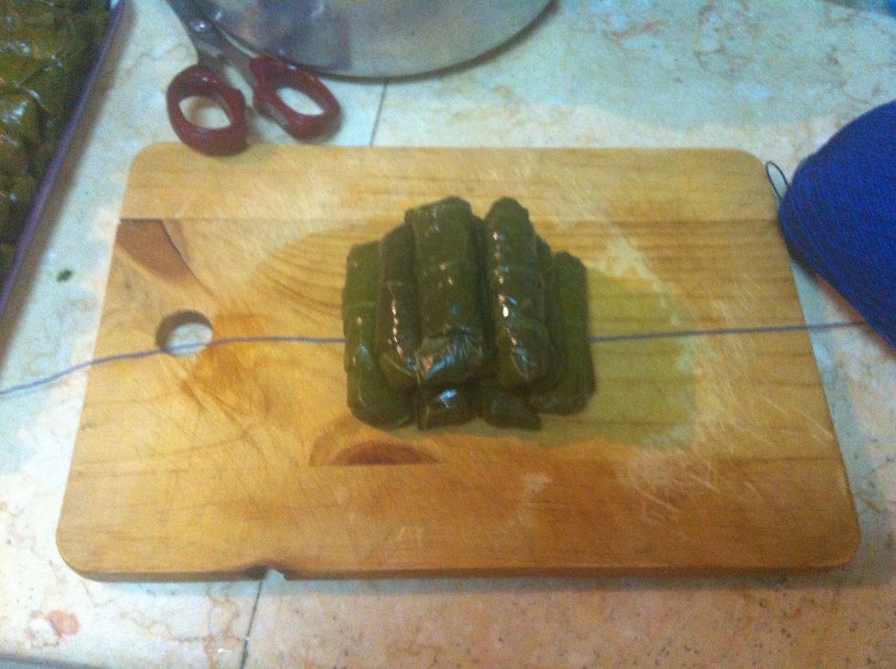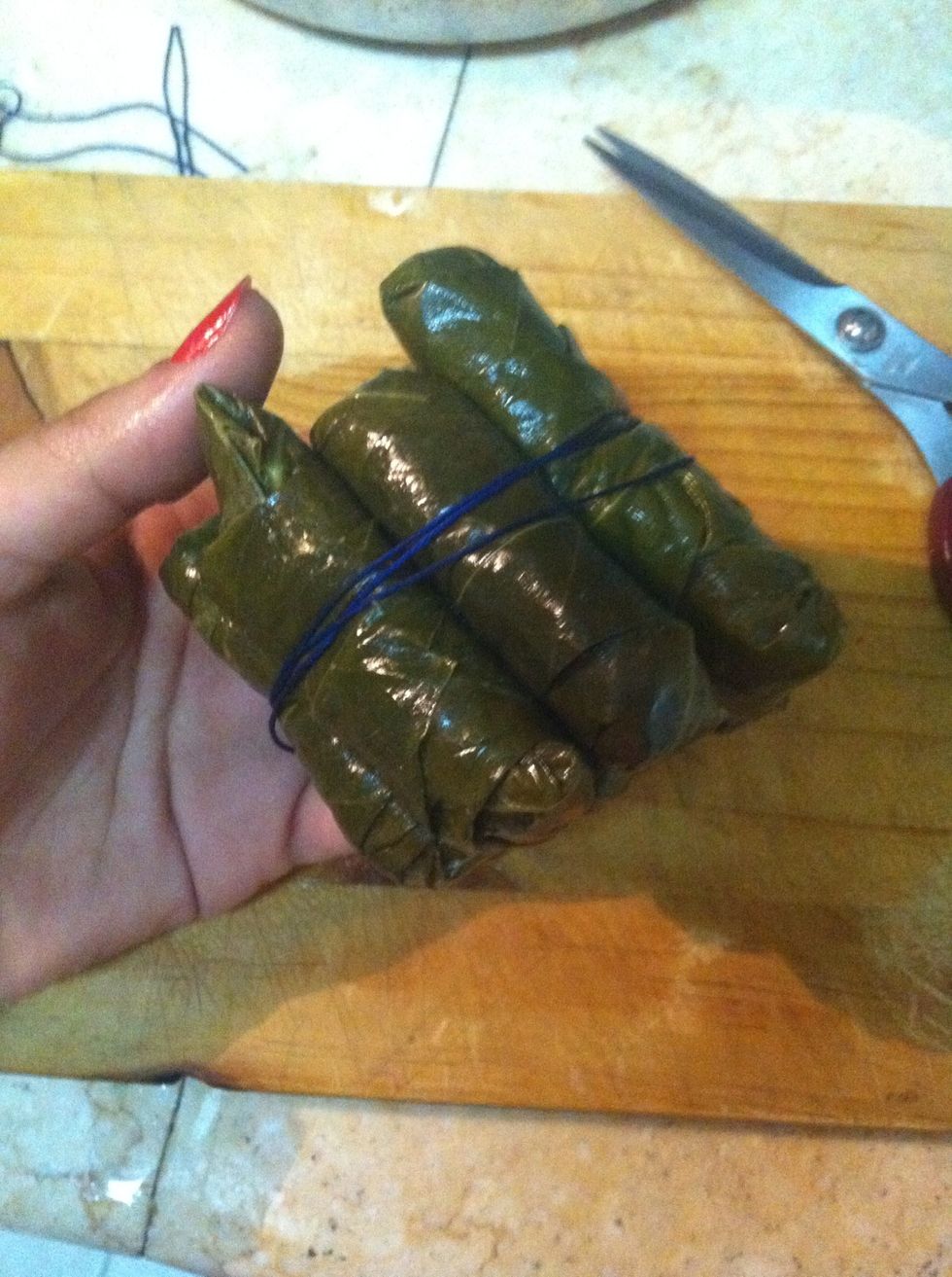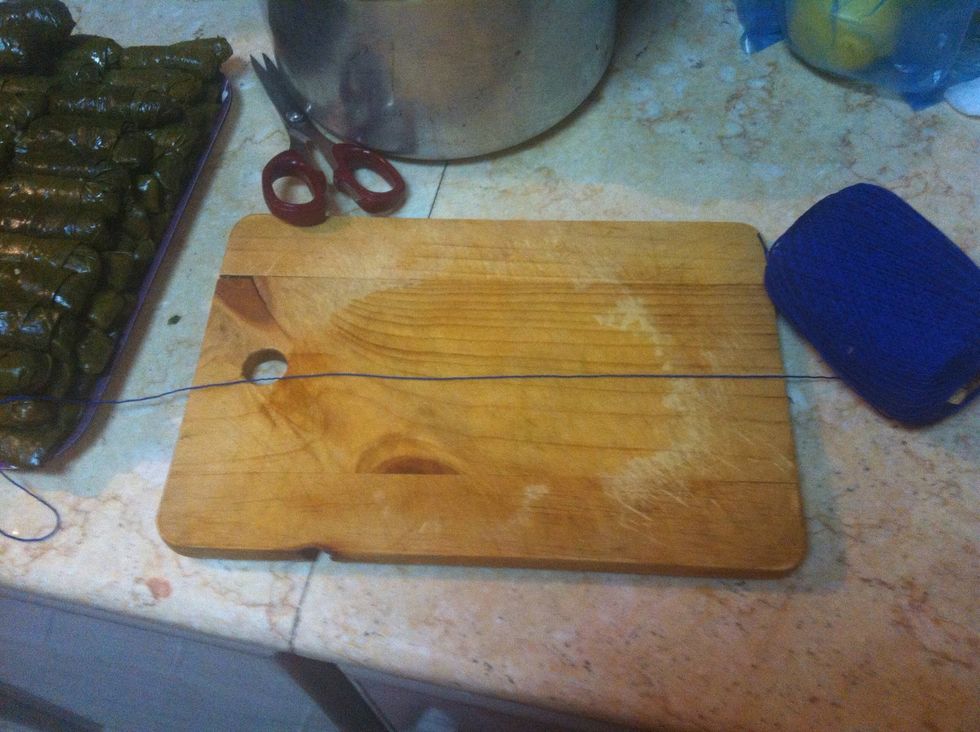 خيط عشان نلف ورق العنب بمجموعات عشان ما يتفكك