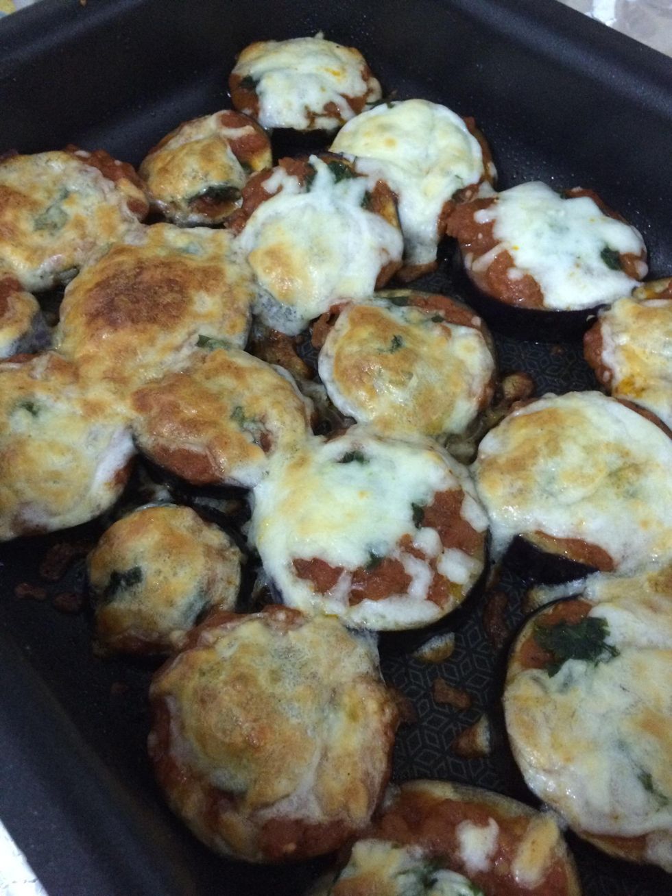 نضع جبن الموزريلا على حلقات الباذنجان ثم نضع الصينيه في الفرن لمده ربع ساعه تقريبا على درجه حرارة متوسطة