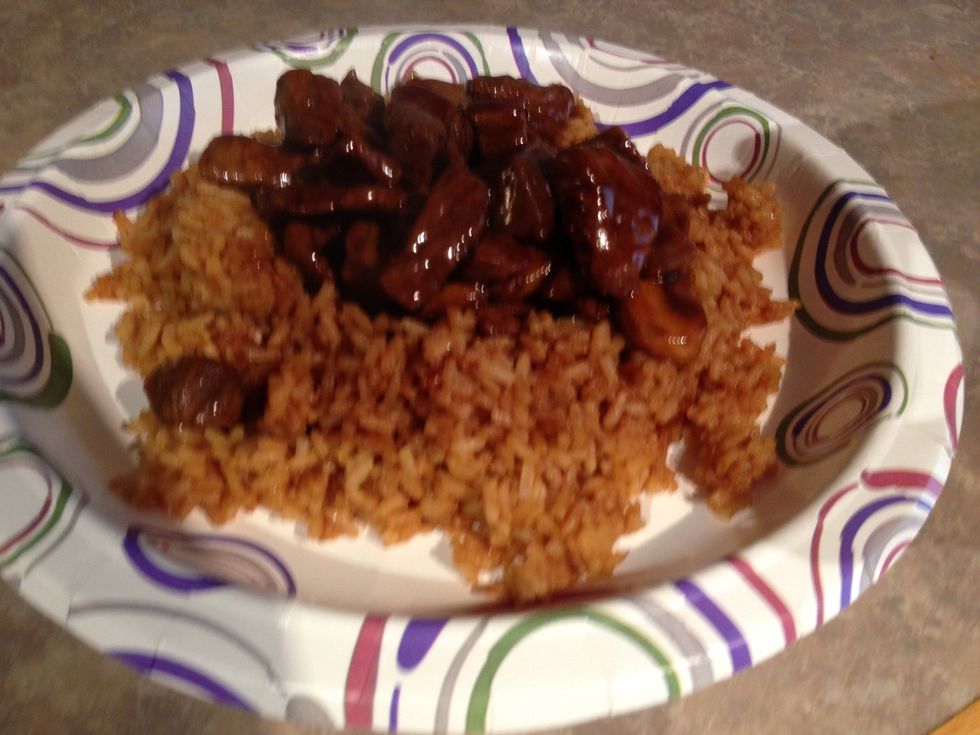 While the mushrooms are cooking fry rice with butter and soy in different pan