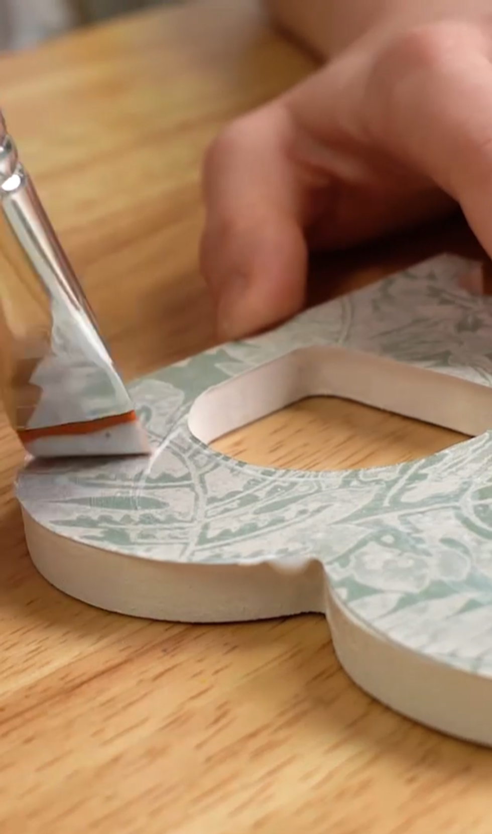 Apply paper to letter using Matte Mod Podge and let dry. Apply top coat of Sparkle Mod Podge to letters, let dry.