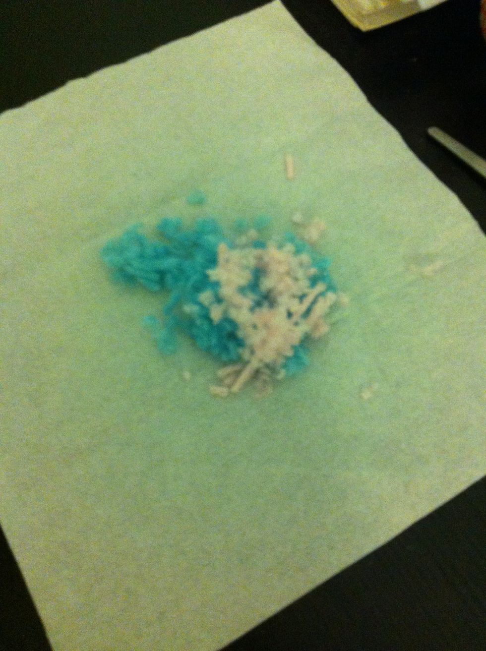 Now I suggest you to get a piece of paper so you can catch all the rubbish making it easier to clean up later. The blue stuff was from the one I made before