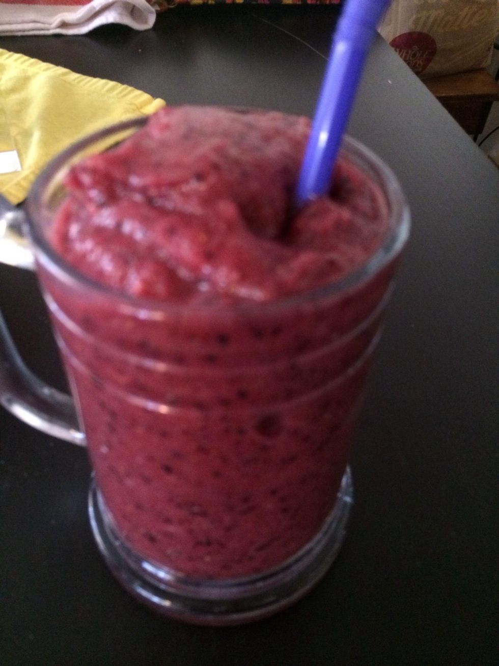 1.0c Strawberries1/2c Blueberries1/2 Orange peeled 1.0 Supplement1/2Tbsp Flaxseed oil1.0c Apple juice